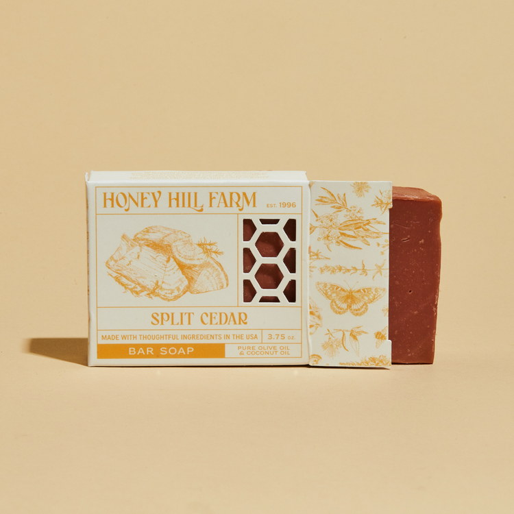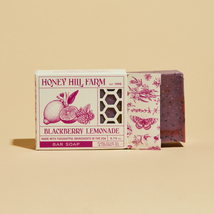 Handmade the old-fashioned way, HHF’s original ‘wonder bar’ contains pure Honey, Beeswax, and nourishing plant oils that are gentle on skin but still get you nice and clean. Bars come in a plastic free, recycled paper box with a honeycomb cut-out. Hand drawn illustrations on each box denote the scent, and stories from life on the farm.